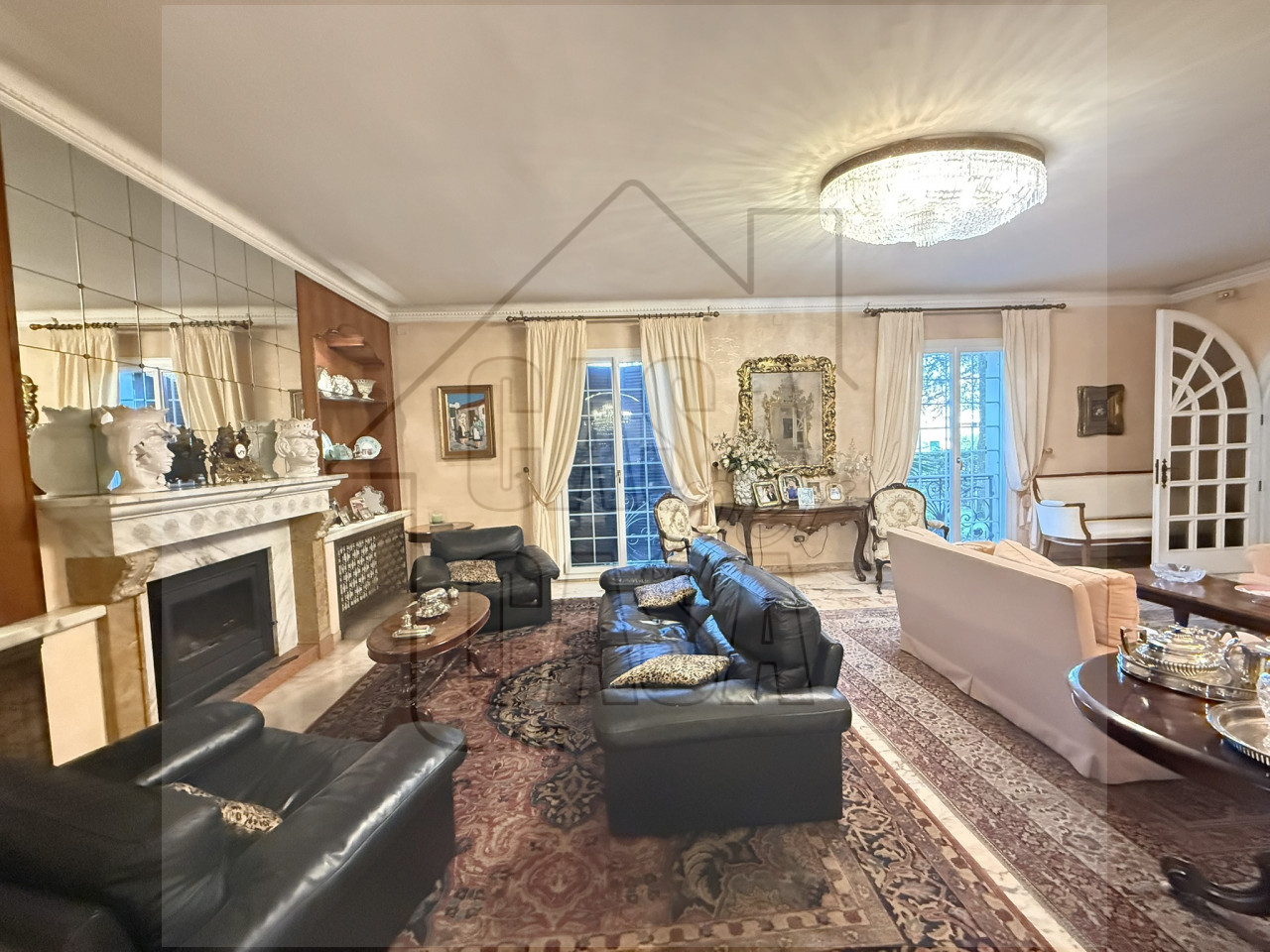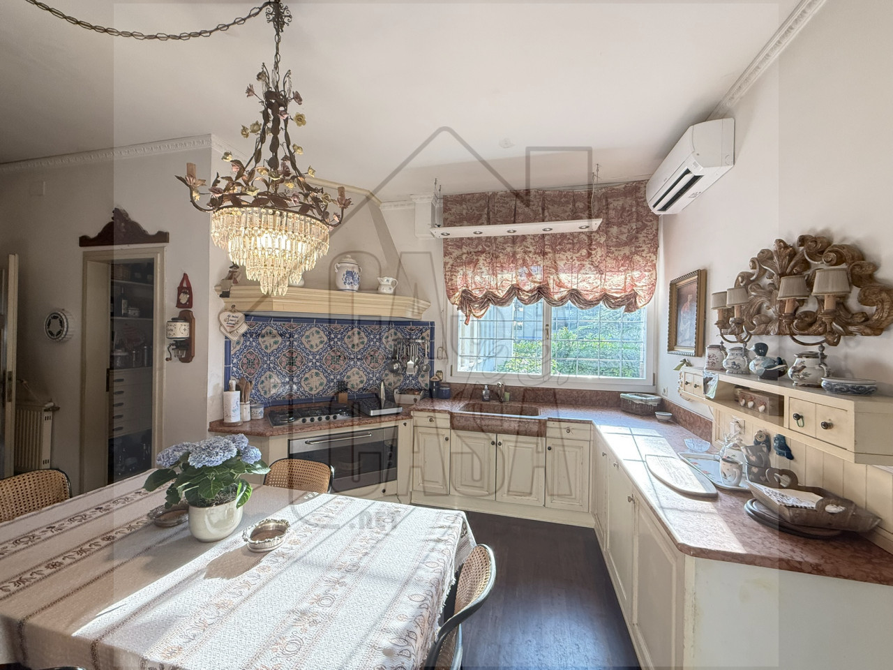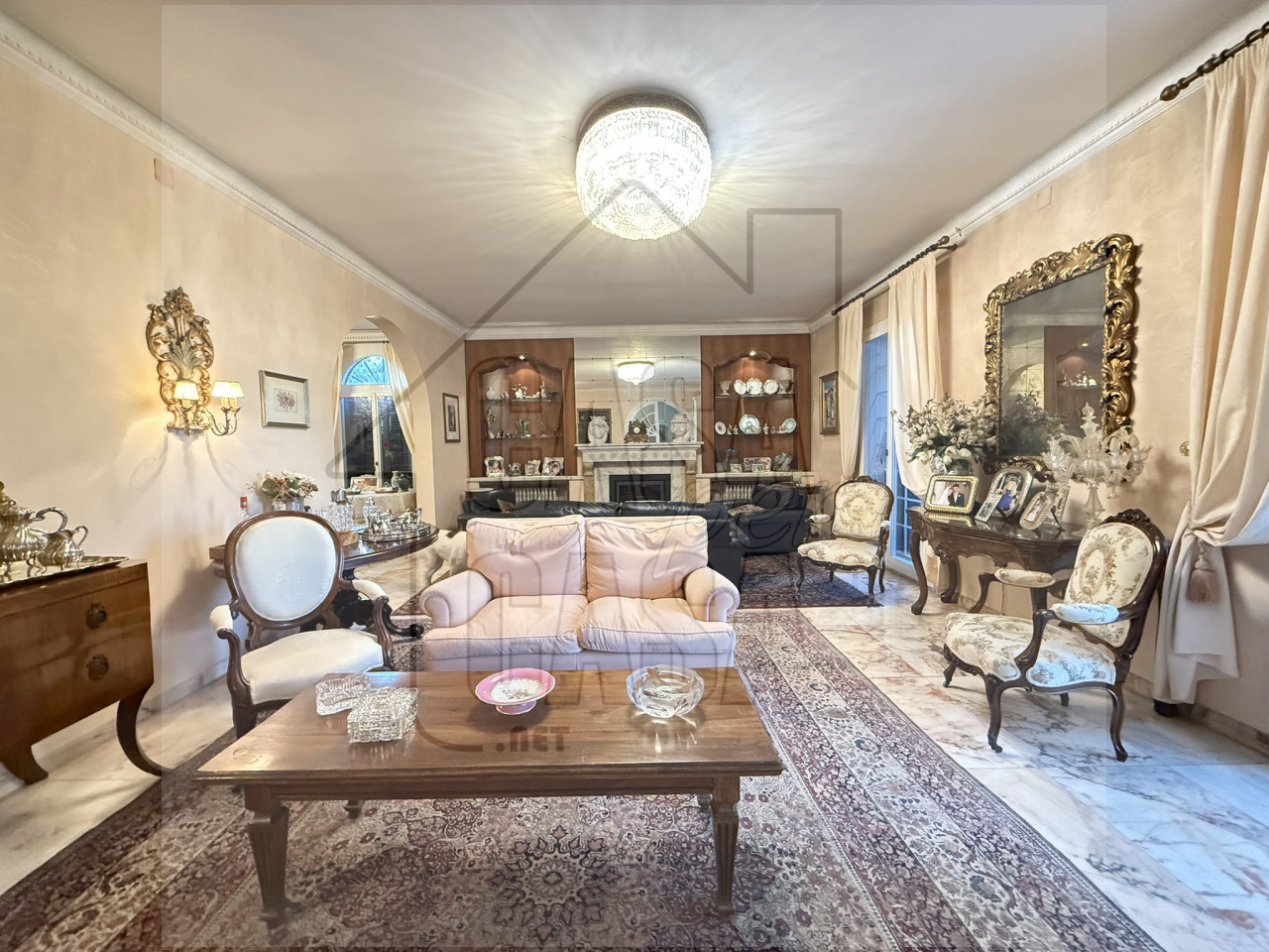 Al piano terra l'ampio ingresso è caratterizzato da un'imponente scalinata fatta a mano, un salone con camino e sala da pranzo, cucina abitabile e spaziosa, lavanderia, quattro stanze e tre bagni.