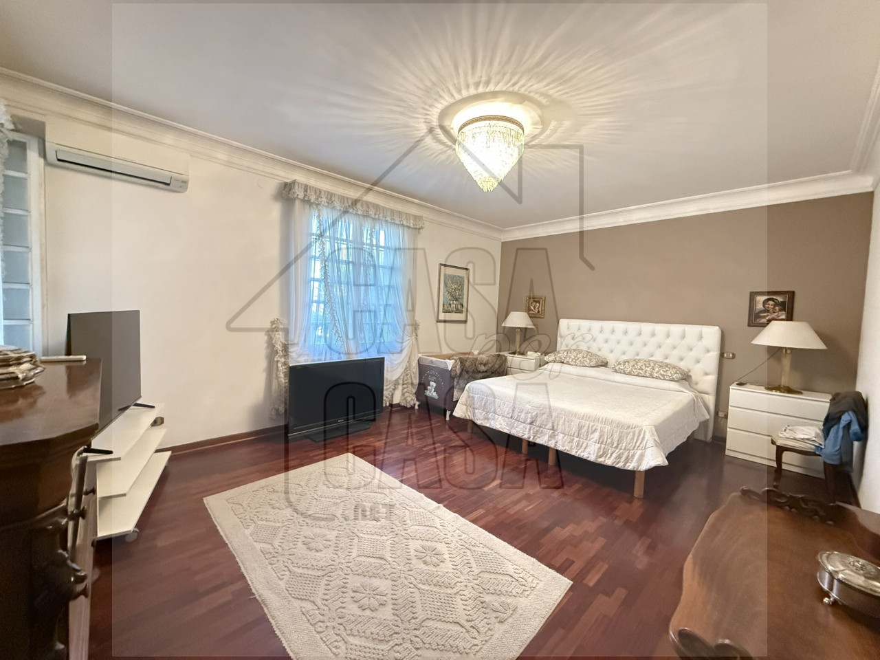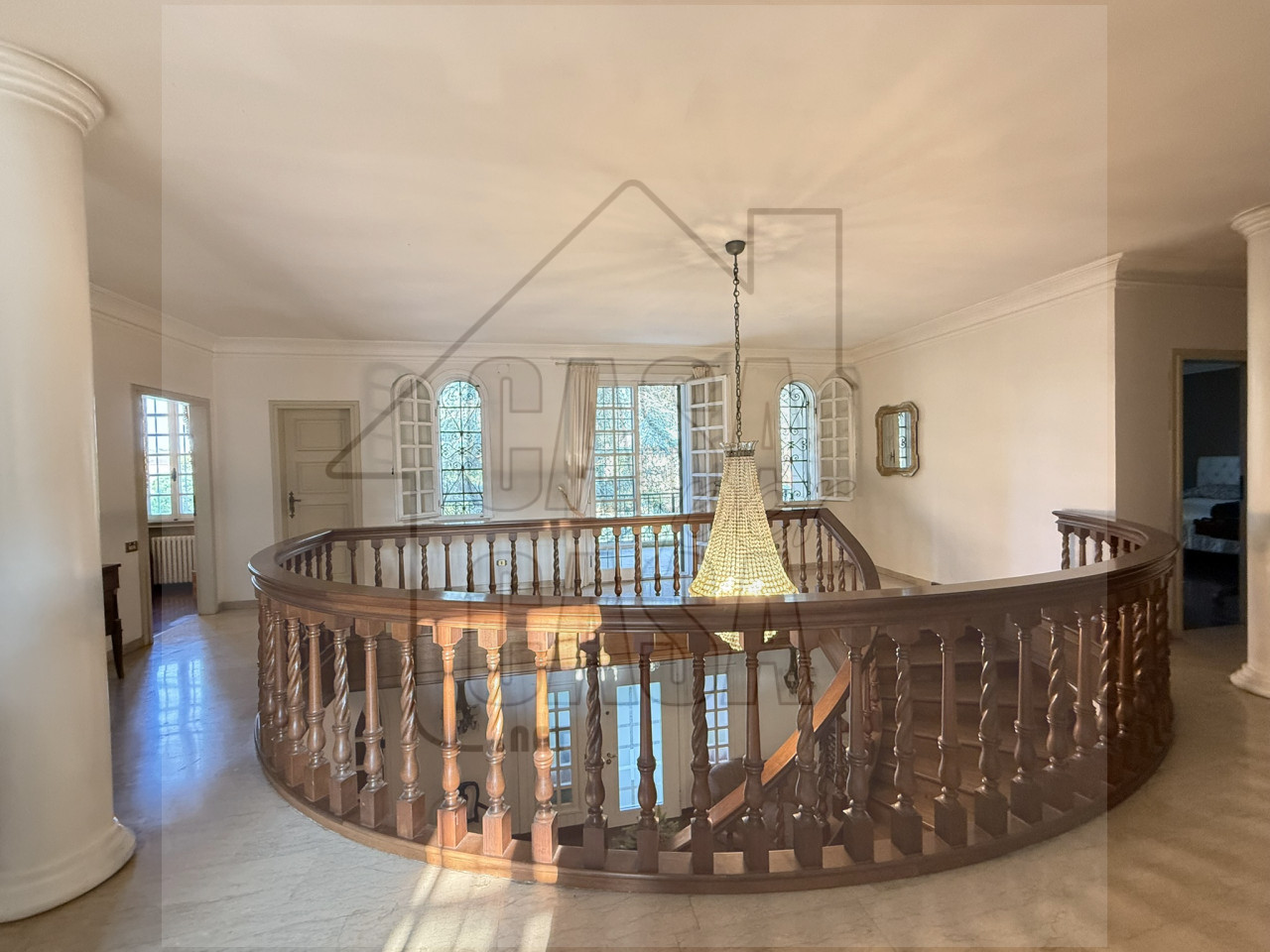 Al piano superiore cinque grandi camere da letto, ognuna con cabina armadio e bagno privato.